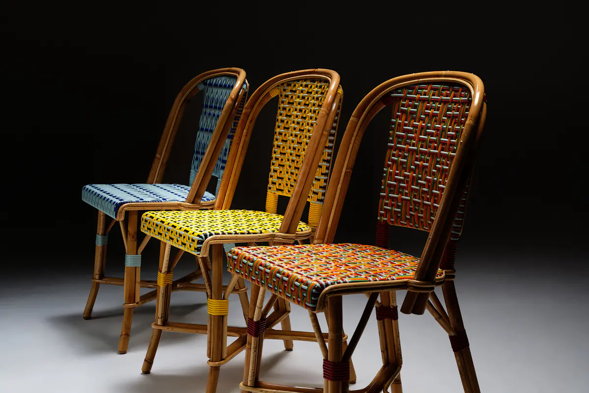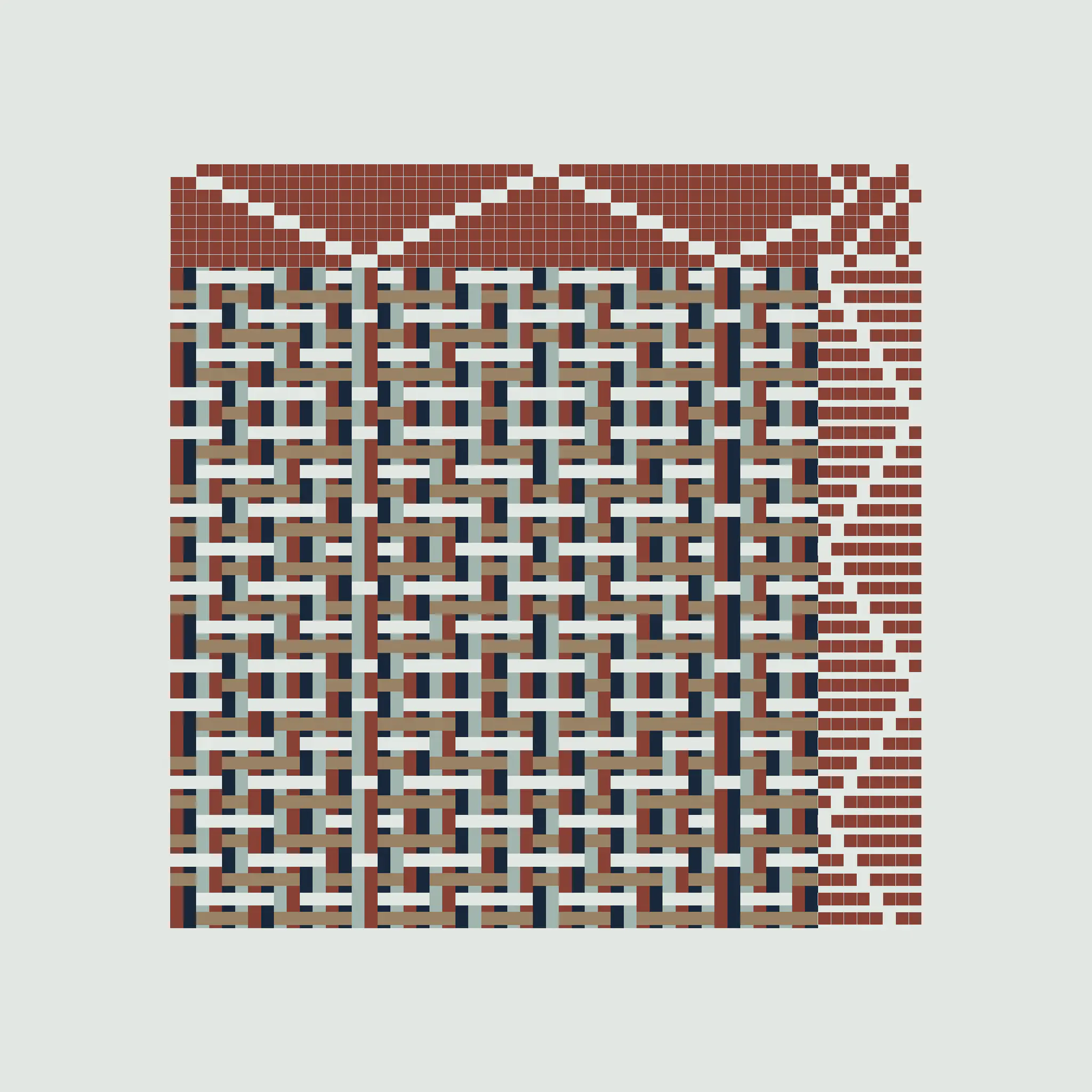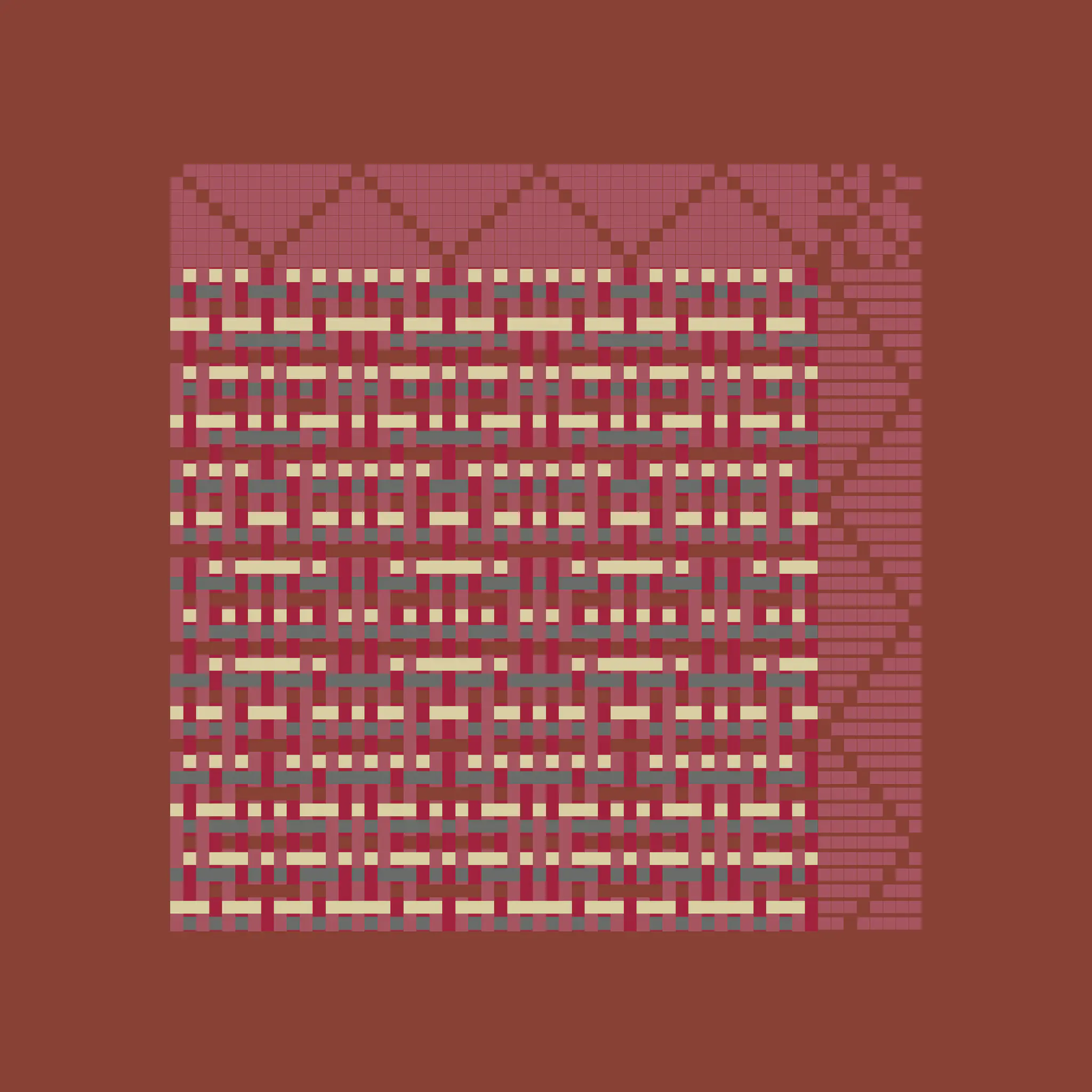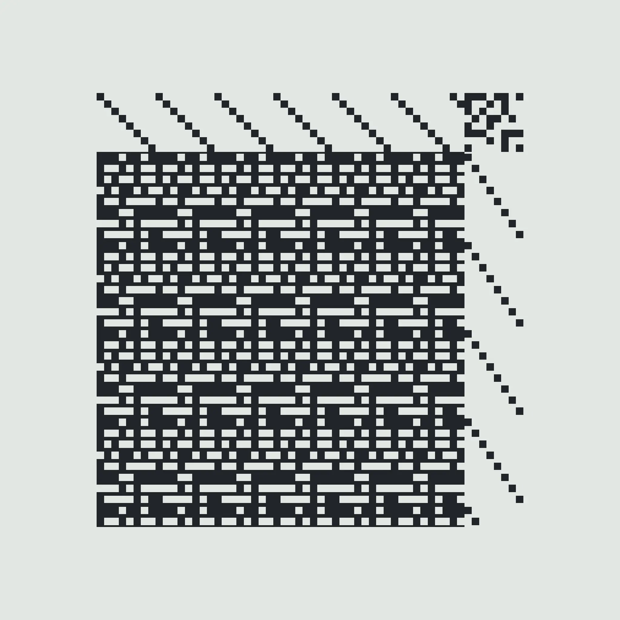 Enlace is a generative art project made with Aranda\Lasch in collaboration with Trame for Bright Moments Paris. It simulates a Weaving Draft, a notation for woven textile patterns. Cafe chairs below are made by Maison Louis Drucker based on the Weaving Draft, released as an edition of 100. Each edition is randomly generated and controlled with 60 different parameters.