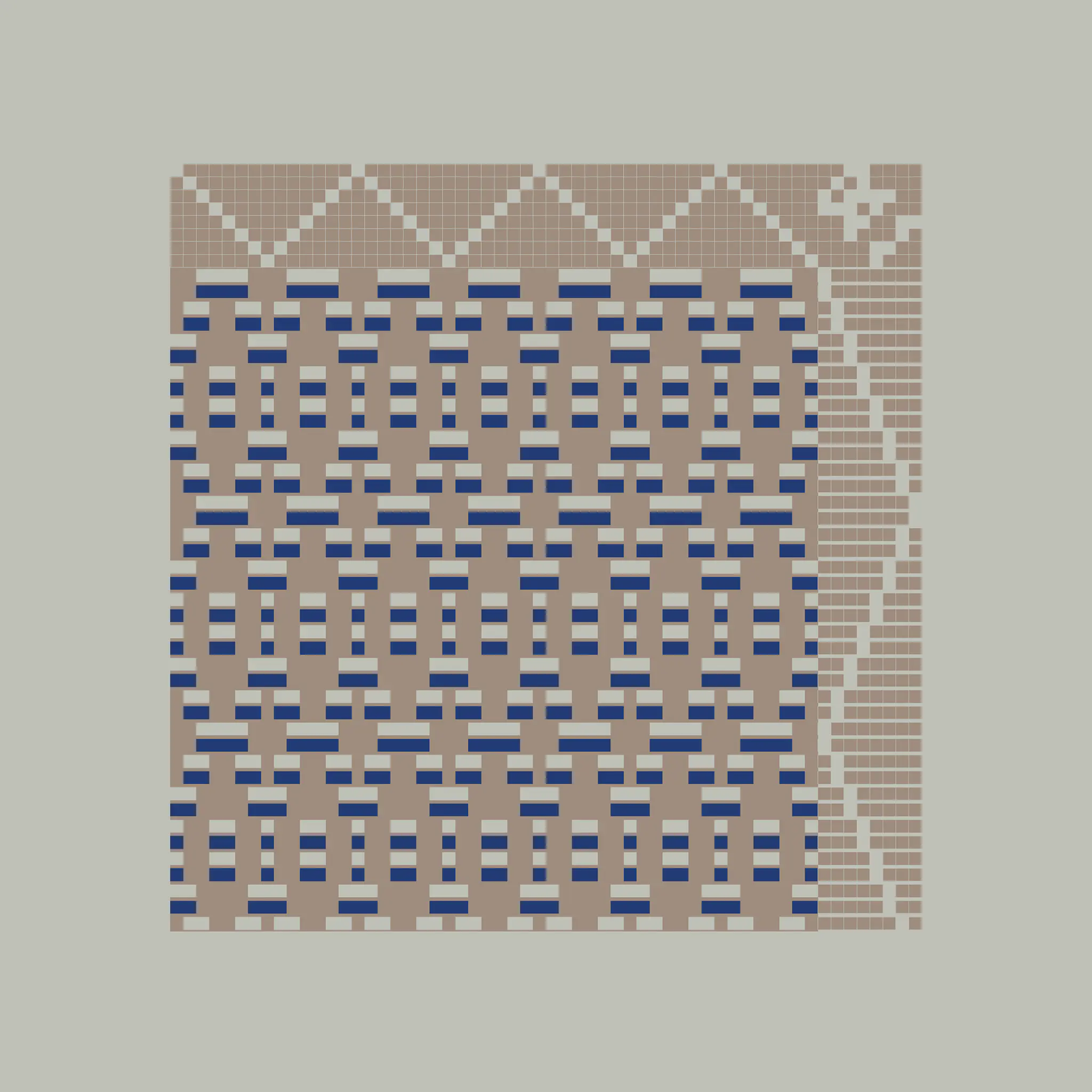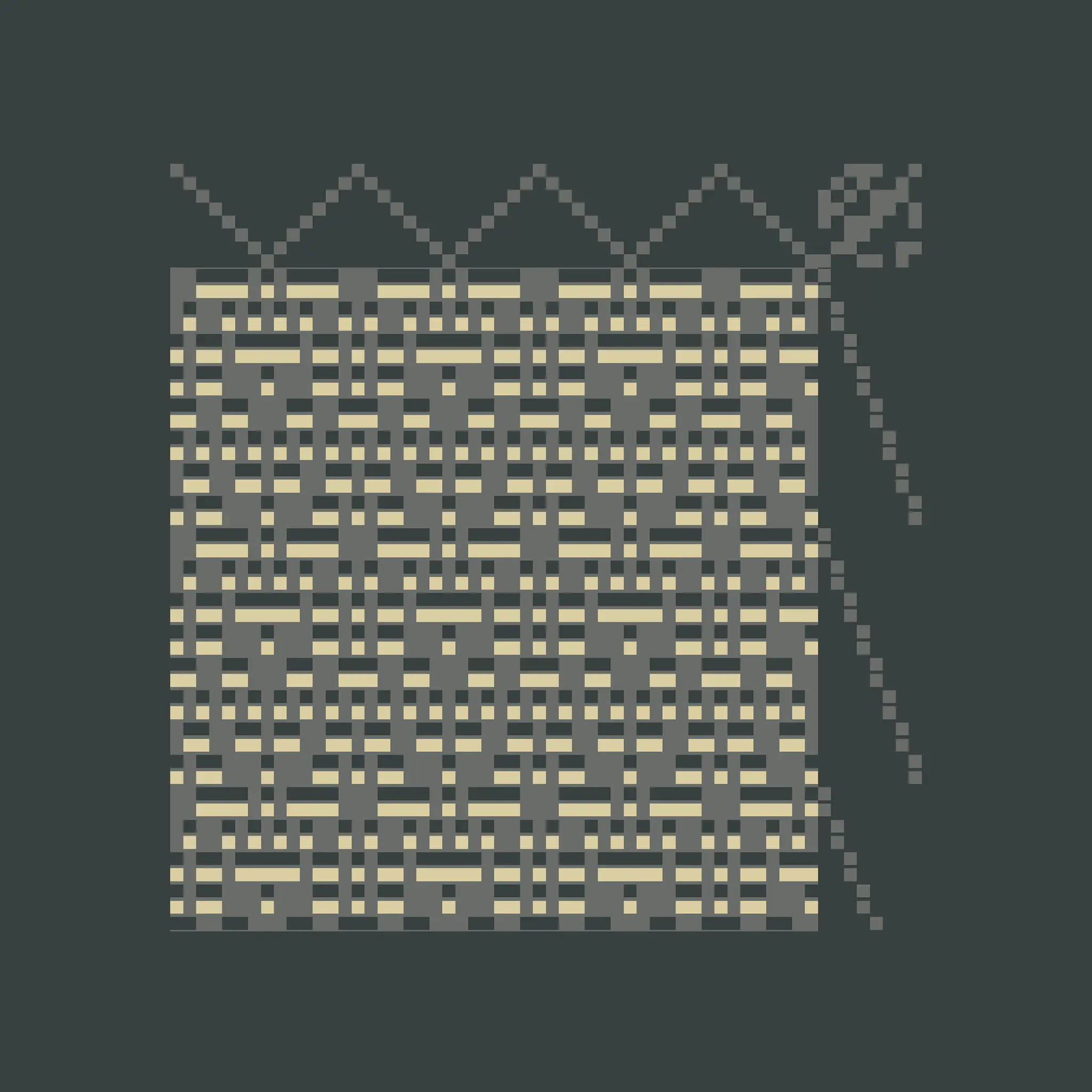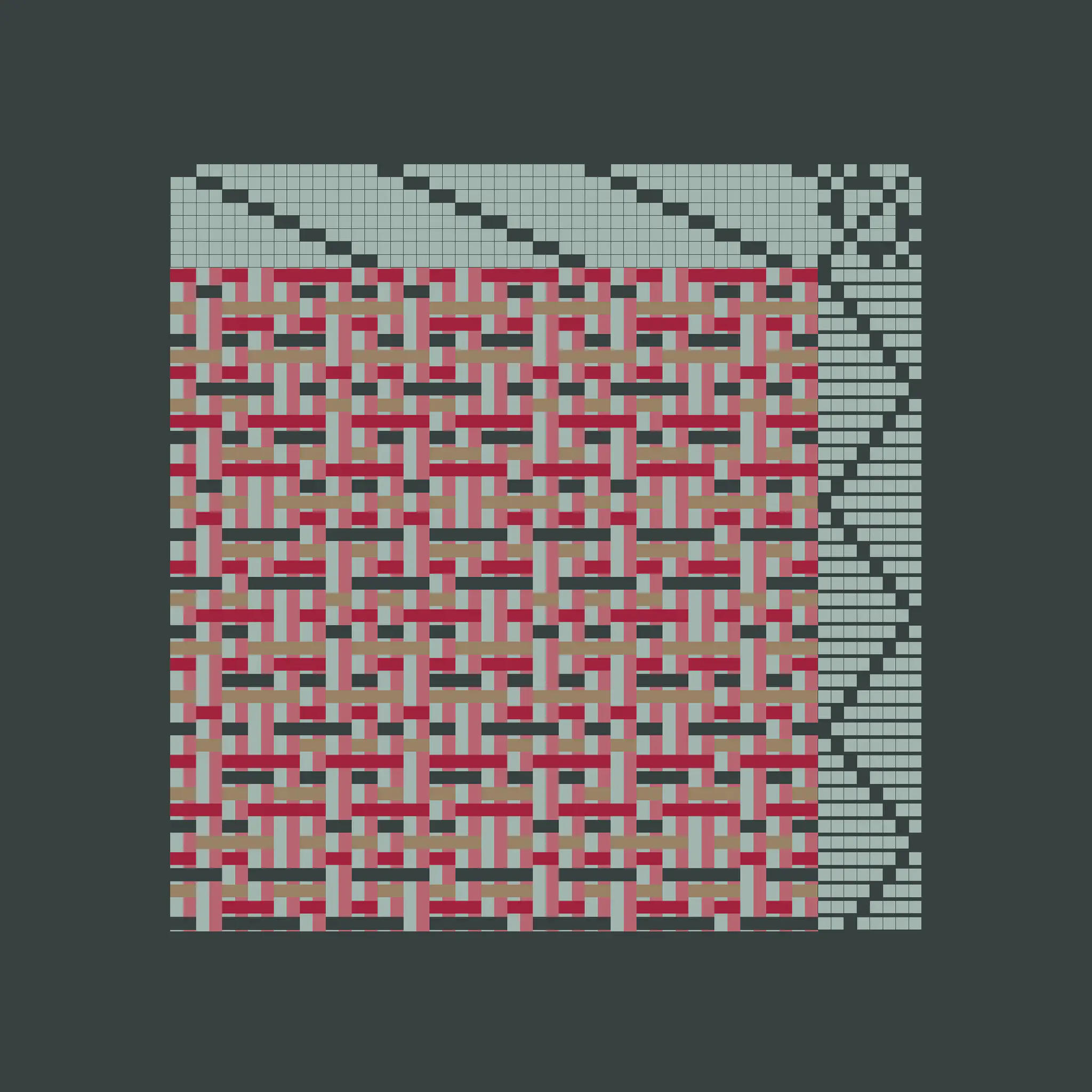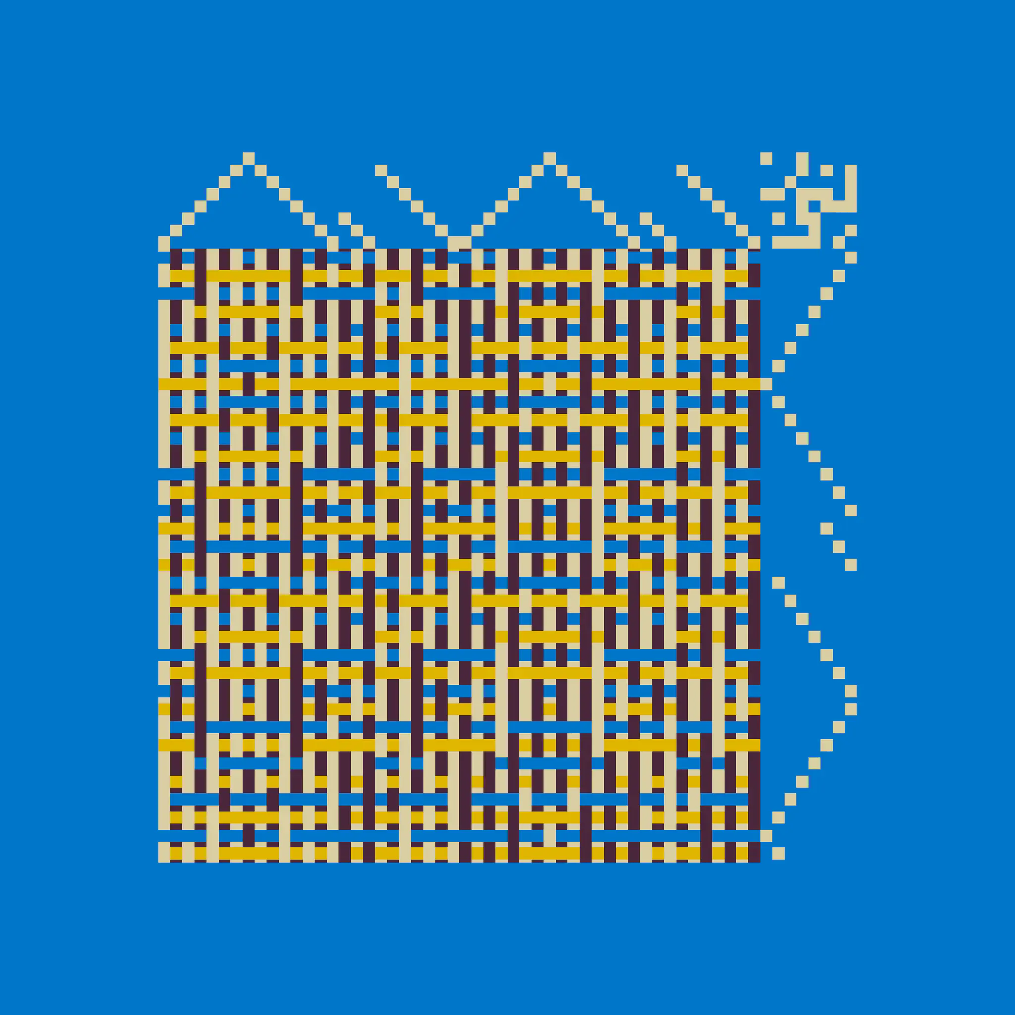 Enlace is a generative art project made with Aranda\Lasch in collaboration with Trame for Bright Moments Paris. It simulates a Weaving Draft, a notation for woven textile patterns. Cafe chairs below are made by Maison Louis Drucker based on the Weaving Draft, released as an edition of 100. Each edition is randomly generated and controlled with 60 different parameters.