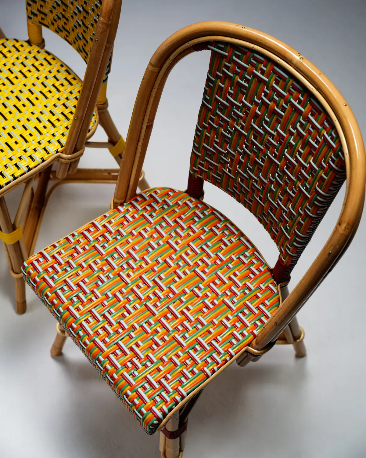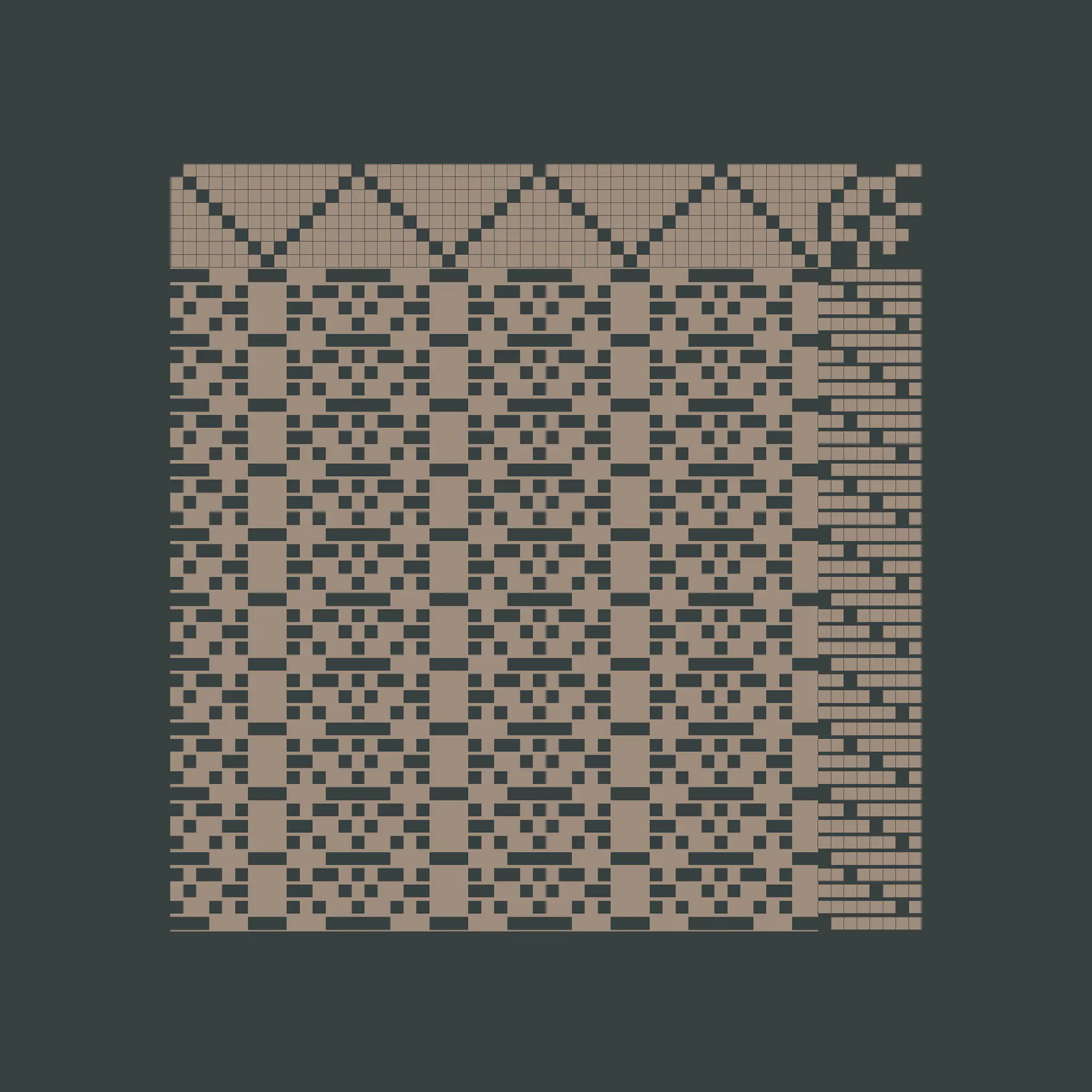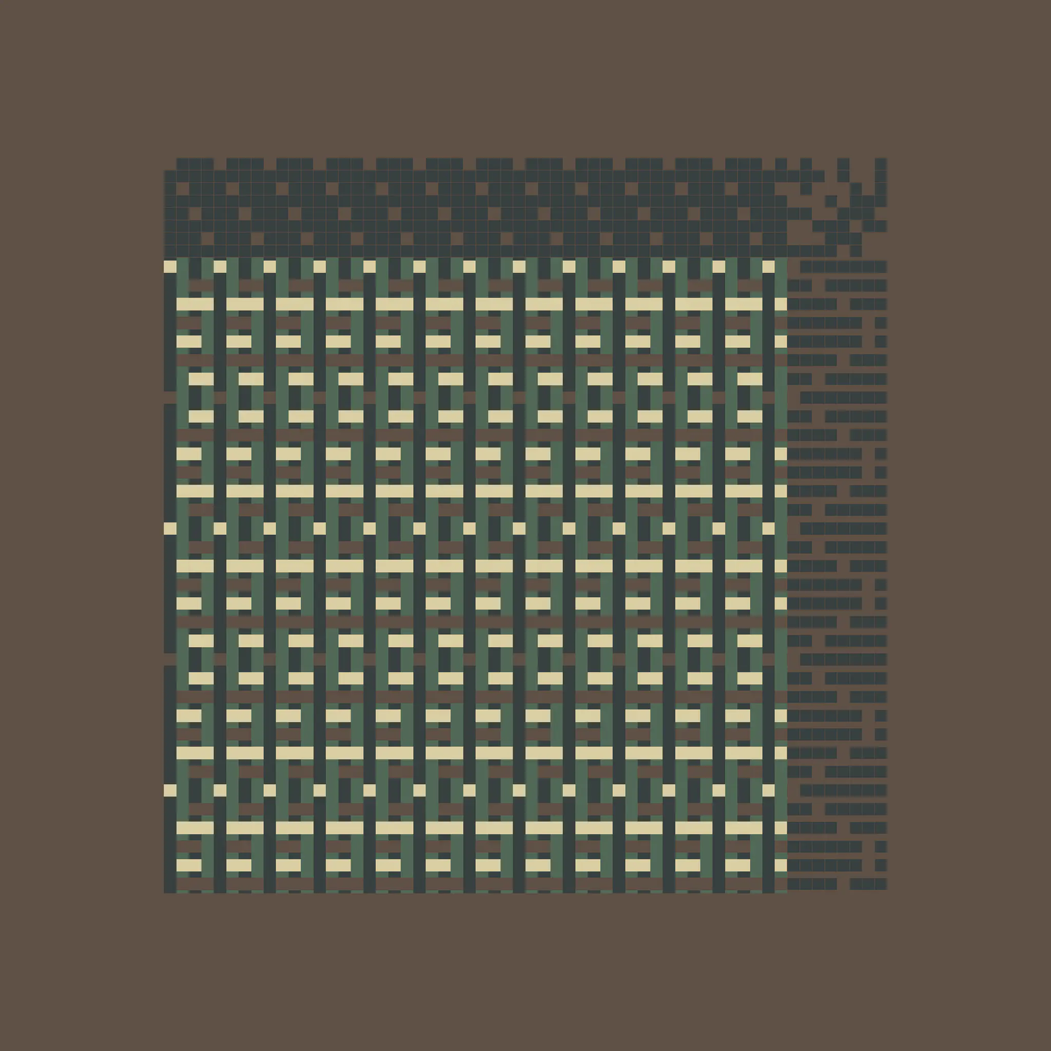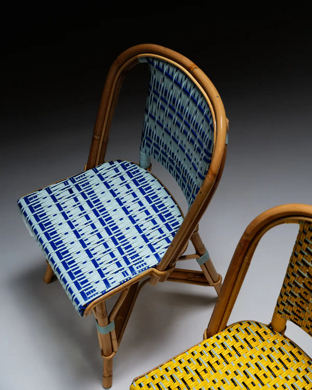 Enlace is a generative art project made with Aranda\Lasch in collaboration with Trame for Bright Moments Paris. It simulates a Weaving Draft, a notation for woven textile patterns. Cafe chairs below are made by Maison Louis Drucker based on the Weaving Draft, released as an edition of 100. Each edition is randomly generated and controlled with 60 different parameters.